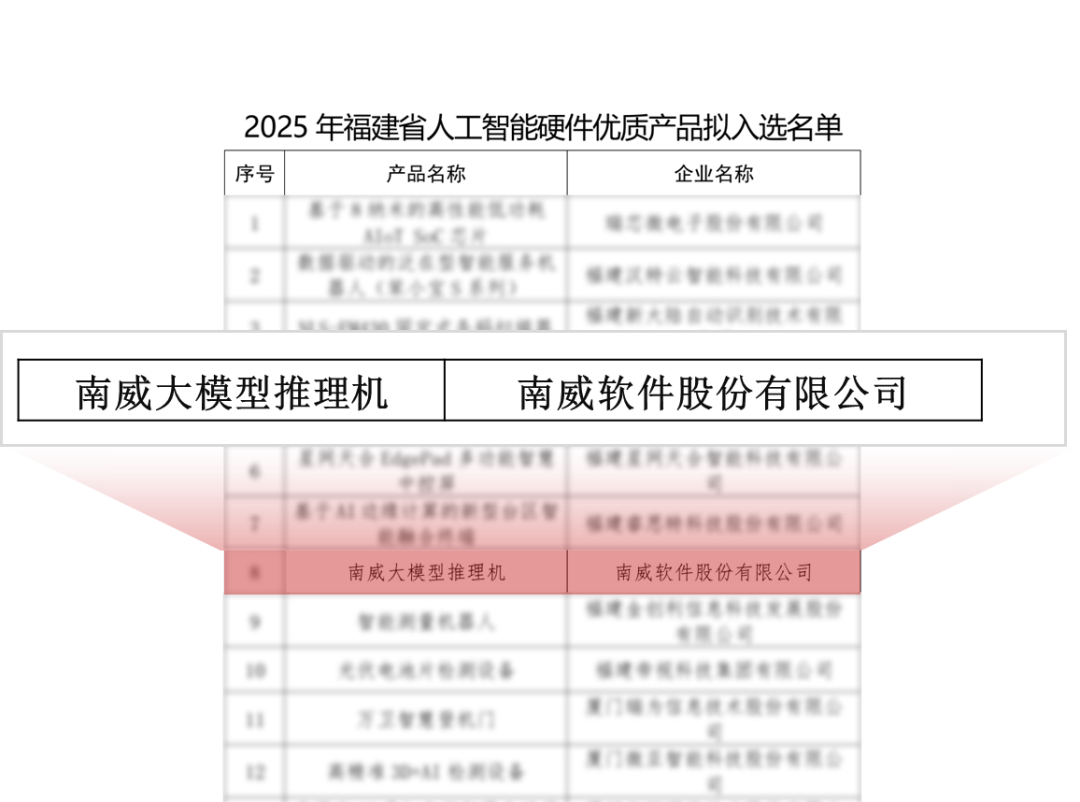 近日,福建省工业和信息化厅公布《2025年福建省东谈主工智能硬件优质居品名单》。南威软件(603636)“大模子推理机”凭借全栈自主的本领架构、超卓的可靠性和超越的场景袒护才气脱颖而出,顺利入选名单。