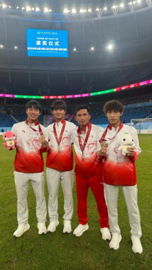18岁的许鑫龙三面出击,不仅拿下田径搀杂4×400米接力金牌,还取得男人4×400米第七名、男人400米第八名,成为赛说念上的多面手;